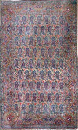 A Kirman rug, woven with rows of botehs within meandering borders, 7ft 6ins x 4ft 6ins...