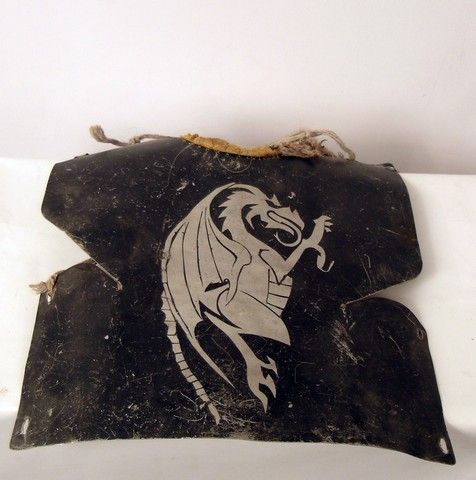 Show biz is filled with folks who completely reinvent their lives. But this has been going on for generations. And was quite common in the days of the Knights of the Roundtable. In "A Knight's Tale" (2001), a story inspired by "The Canterbury Tales", a master Knight suddenly dies in a jousting accident, and his squire, William Thatcher (Heath Ledger), takes on his identity and reinvents his own life. This is a thin metal front chest plate with dragon design from the movie. (Approx. 19 1/2" x 18"). Oversized item. Additional postage required.