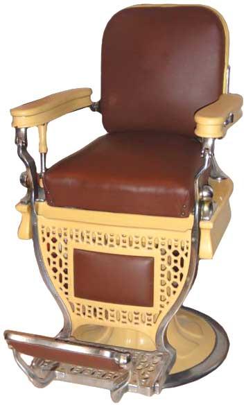A. Koch Barber Chair. Rare Mustard Color Porcelain. All original, Excellent Condition. 44 inches tall.
