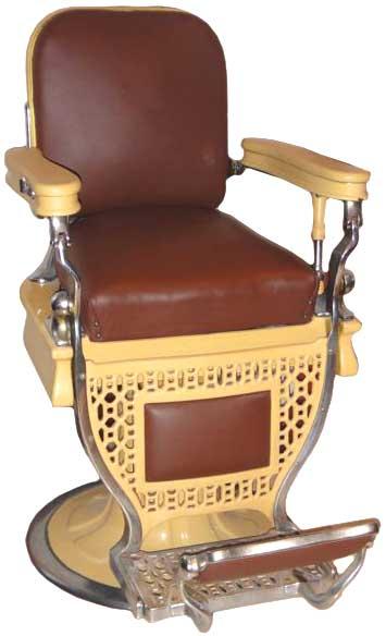 A. Koch Barber Chair. Rare Mustard Color Porcelain. All original, Excellent Condition. 44 inches tall.
