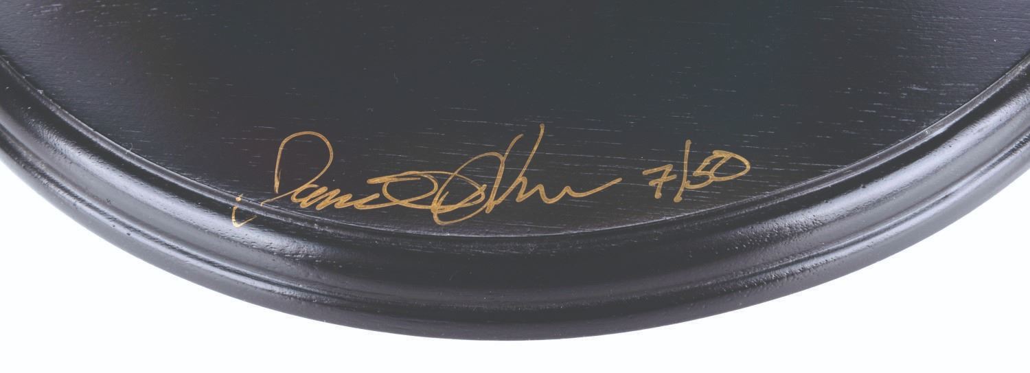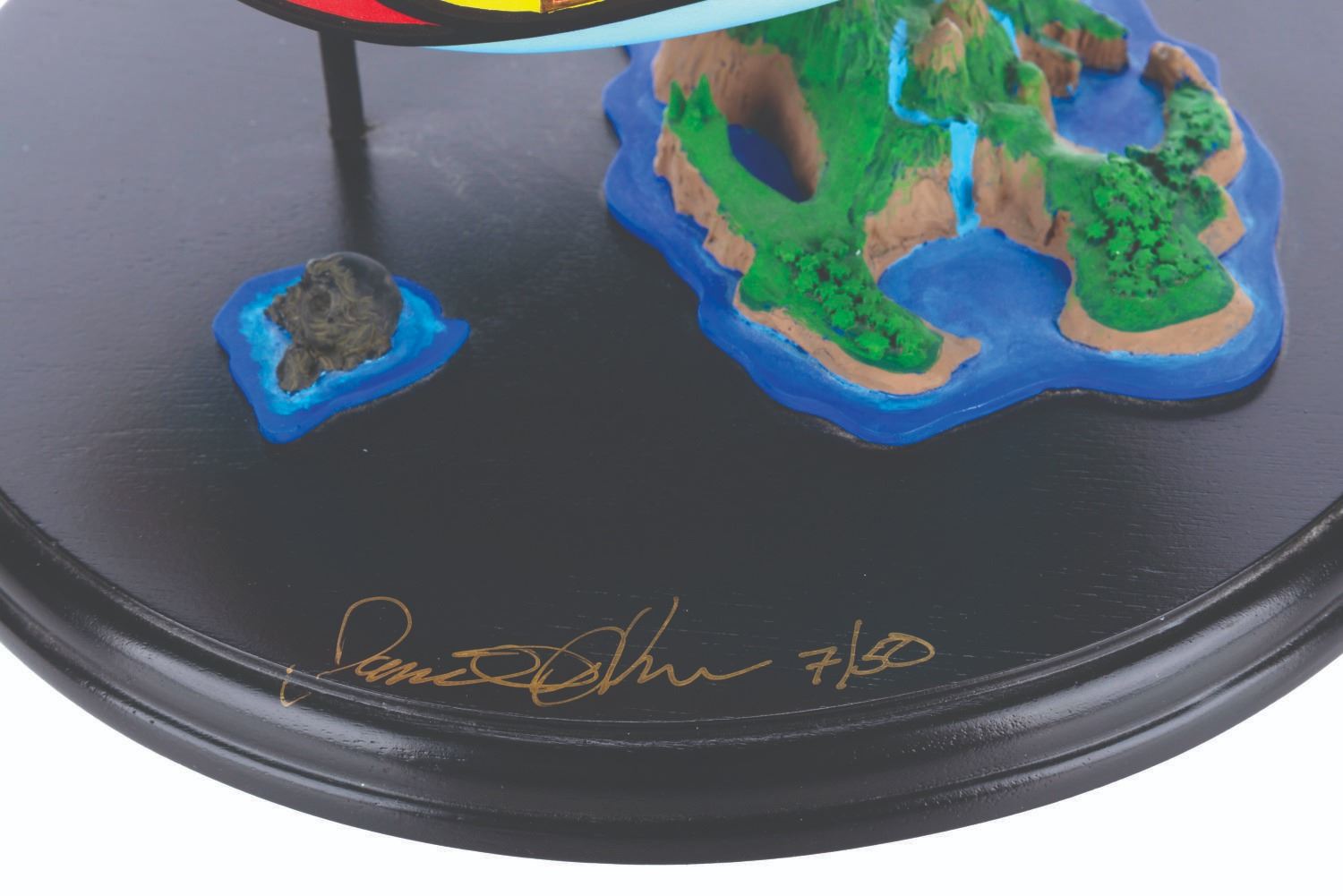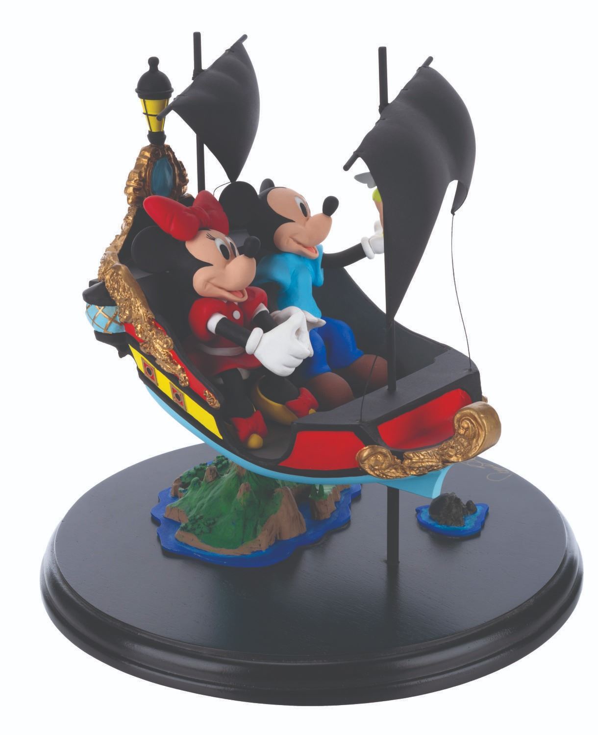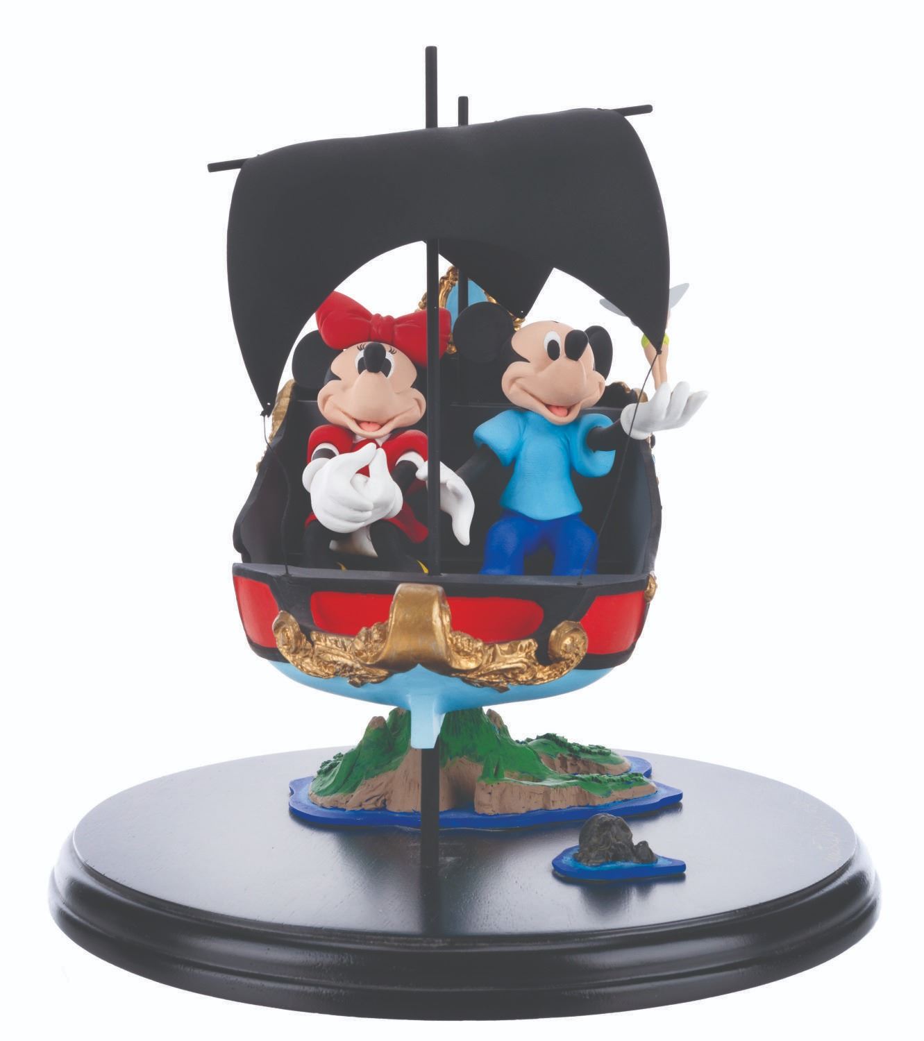 (Disney, 2002) A hand-cast and painted figurine of Mickey, Minnie, and Tinker Bell aboard Peter Pan’s Flight, released in a limited edition of only 50. Artist David Kracov signed the base and numbered it 7/50. This sculpture is one of the first Krakov created for Disney, and a larger edition of 1500 was mass-produced in resin. Measuring 9.5" x 9" in diameter, the sculpture is in fine condition.