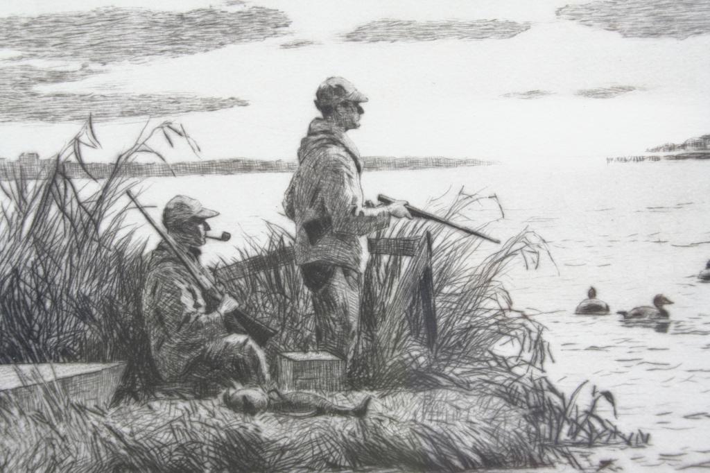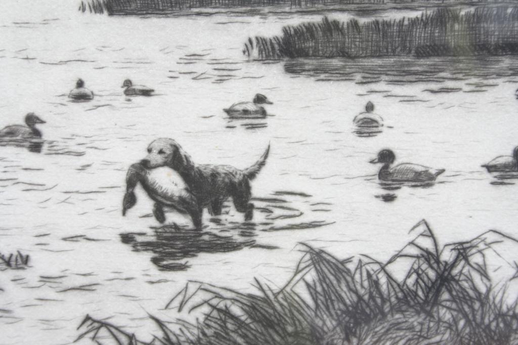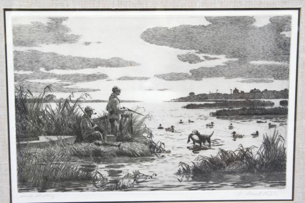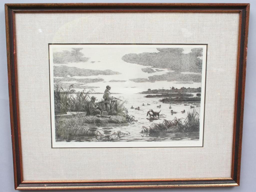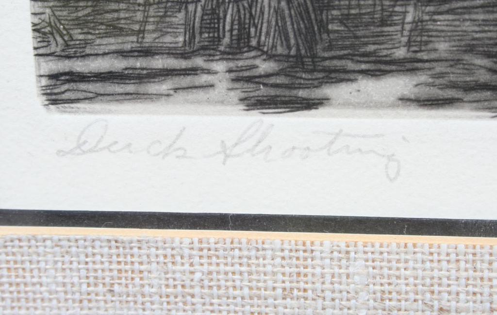 Aiden Lassell Ripley (American, 1896-1969), "Duck Shooting" etching, titled lower left in graphite, signed lower right in graphite, matted and framed. 8 7/8" x 13 1/2" (sight). 17 1/4" x 21 3/4" (framed). Condition: very good, not examined out of frame.