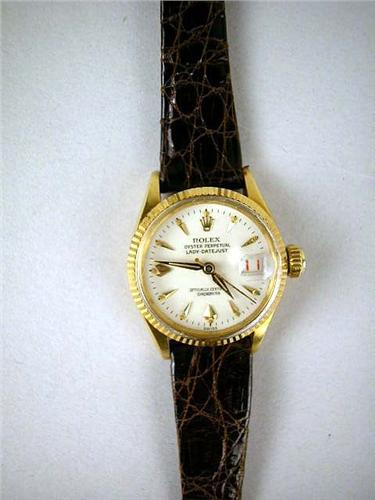 A LADY-DATE JUST ROLEX OYSTER PERPETUAL MOVEMENT WATCH With strap (#6517448707), in an 18K yellow go