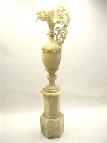 A LARGE ALABASTER EWER ON PEDESTAL; aprox. 53"h