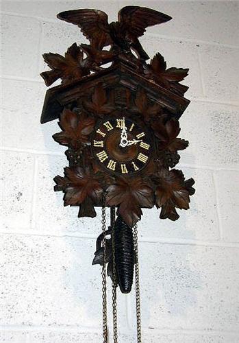 A LARGE BLACK FOREST STYLE CUCKOO WALL CLOCK;