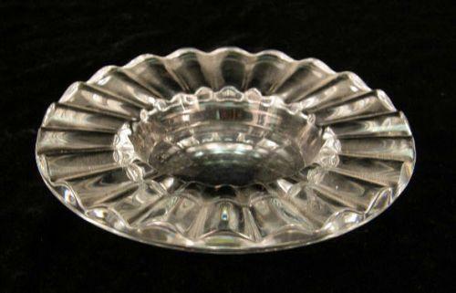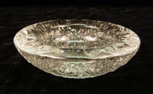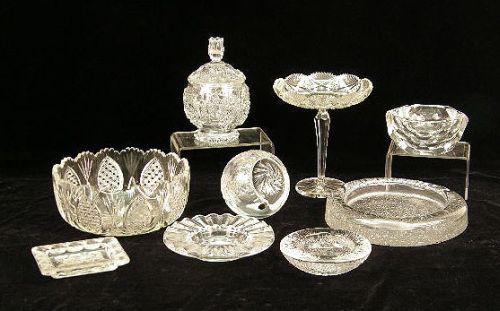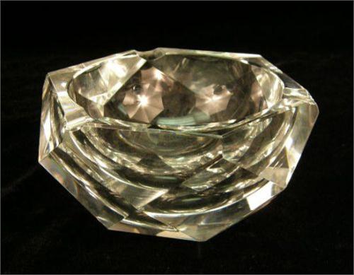 Comprising a cut and faceted globular ashtray, a Baccarat ashtray, a large, shallow Finnish serving bowl, a Waterford-style compote, a covered jar, cut-glass serving bowl, three miscellaneous ashtrays and two boxes of four each Gullaskruf Sweden tea glasses in metal holders. 11 pieces. One ashtray with a chip to the edge.