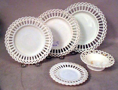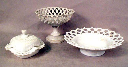 Including compotes, plates, and a covered dish. Together with two toothpick holders. Losses. Approximately 30 pieces.