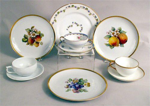Including twelve Rosenthal cups and saucers, Copeland Spode "Castle" pattern plates, a silver lustre pitcher, and a group of mustache cups.