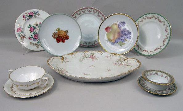 Comprising Wedgwood, England, John Haddock, England, German, and Austrian examples. Together with ten Limoges porcelain ramakins with underplates, a Limoges porcelain oval platter, and twelve Royal Worcester "Chantilly" bouillon cups and saucers. 61 pieces
