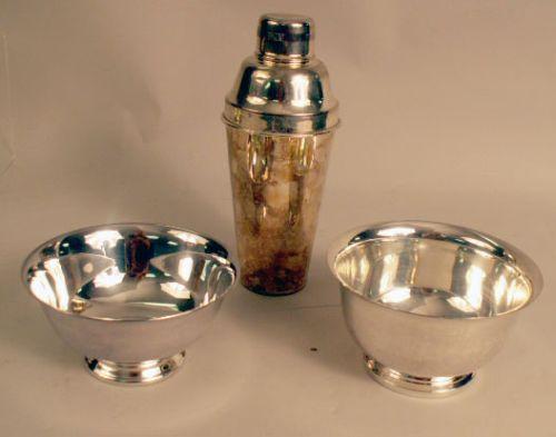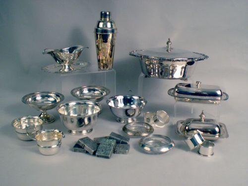 Comprising twelve bread and butter plates, six napkin rings, two sterling napkin rings, four cigarette lighters, a Barbour cigarette box, sugar bowls, gravy bowls, and various serving pieces.