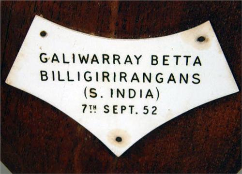 Labeled "Galliwaray Betta/Billigirarangans (S. India)/7th Sept. 1952". Overall 3`h x 31"w x 9"d