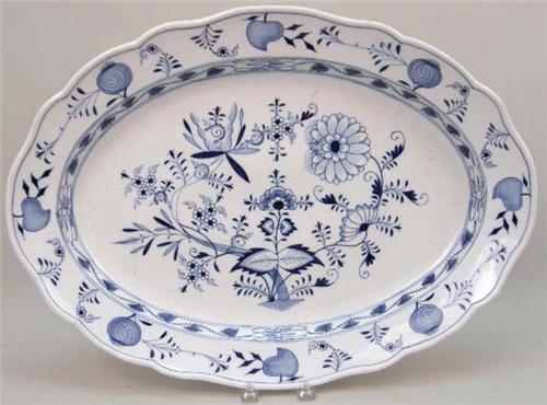 <b>A LARGE MEISSEN BLUE ONION OVAL PLATTER</b>