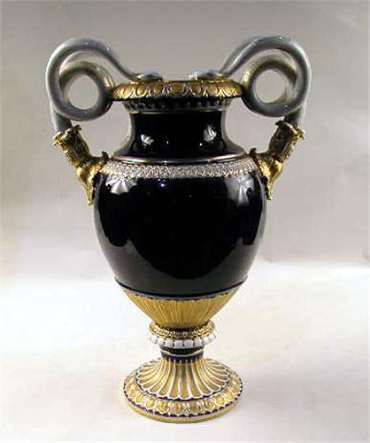 A LARGE MEISSEN DOUBLE SERPENT FORM HANDLED URN;