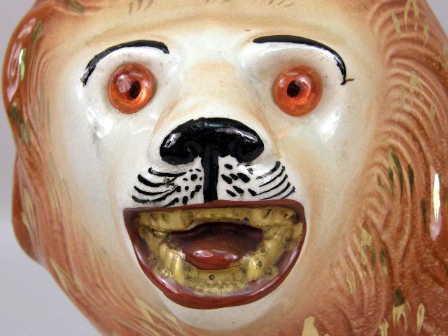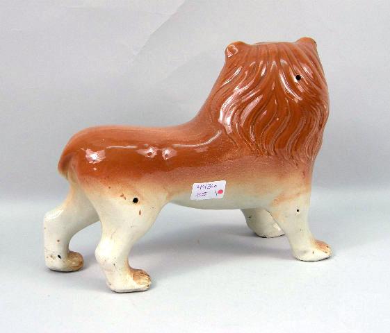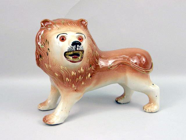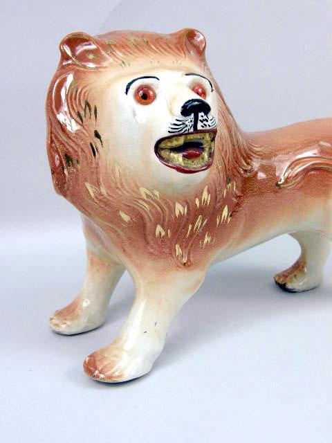 A LARGE STAFFORDSHIRE PORCELAIN STANDING LION FIGURE