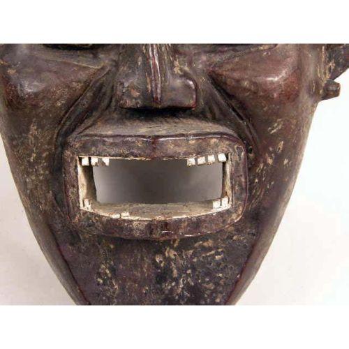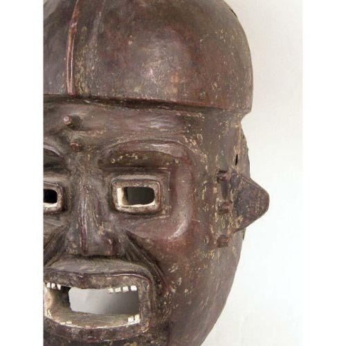 A LARGE SULAMPASU MASK<BR><BR>Democratic Republic of Congo, early 20th century. The blackened softwood carved to depict a grimacing helmeted warrior