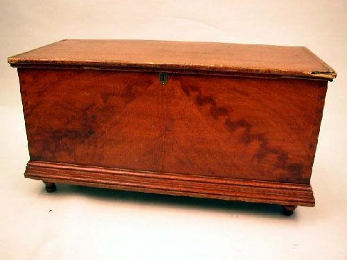 A LATE FEDERAL GRAIN-PAINTED AND COMB-DECORATED PINE BLANKET CHEST; American, with heavy moldings and turned feet, some wear, 19"h x 36"w x 17"d