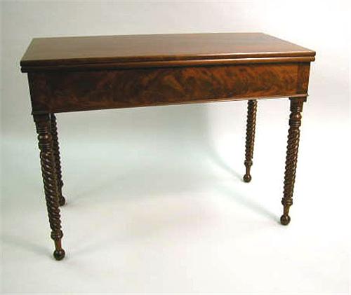 A LATE FEDERAL HIGHLY FIGURED MAHOGANY GAMES TABLE; Massachusetts 30"h x 40"w x 20"d