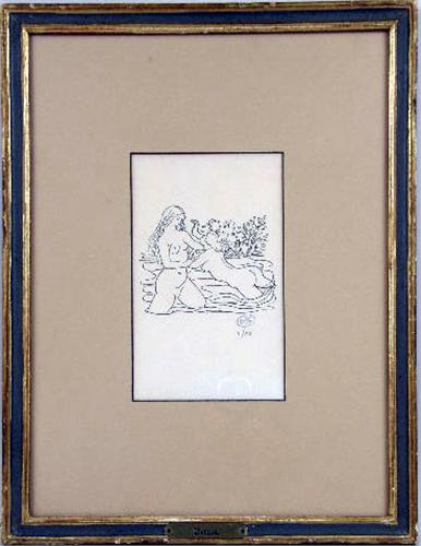 Suite des Bois, Aristide Maillol (French, 1861-1944), an illustration on laid paper from "Quinti Horatii Flacci Carmina, Odes d`Horace", published by Philippe Gonin, Paris, 1939. With the artist`s stamp l.r.c., and numbered 4/50. Sight size 8"h x 5"w