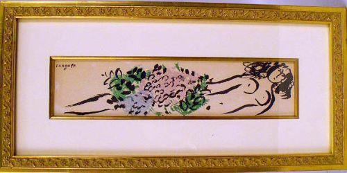 March Chagall, titled "Recumbent Nude", bears signature ul Chagall. 2 1/4"h x 14 1/4"w.
