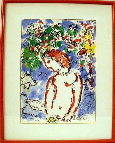 Marc Chagall, a nude female within flowers. 14 1/2"h x 10 1/2"w.