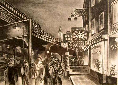 A LITHOGRAPH; "The El" by Ernest Feine, circa 1930, pencil signed lr. "Ernest Fiene 33" edition in pencil "29/50", 10-1/2" x 14-1/8" matted and framed Provenance: Associated American Artist