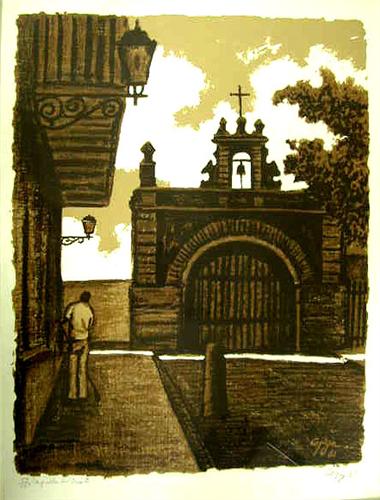 A LITHOGRAPH ; "CAPILLA CRIST" 59/150, signed German Cajiga