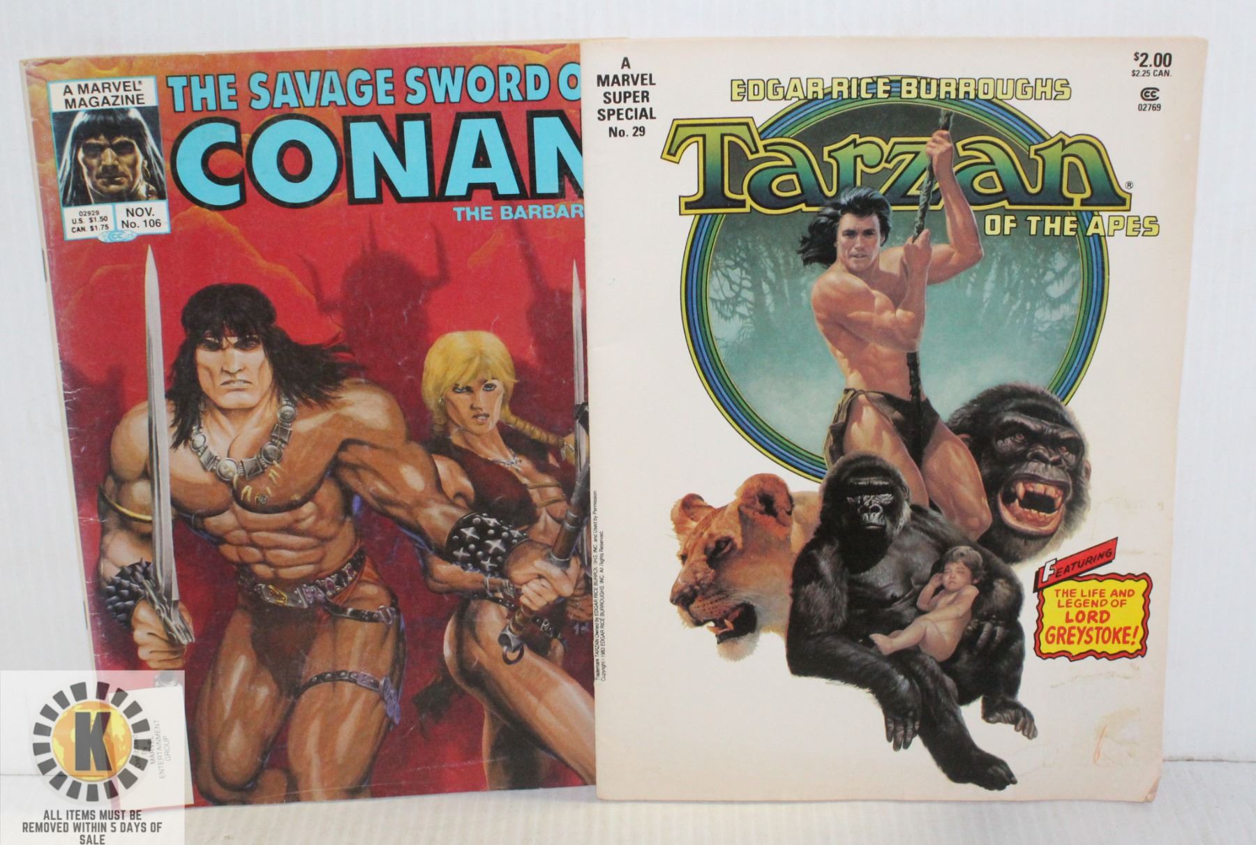SWORD OF CONAN THE BARBARIAN #1 NO. 106 NOV 1984 W/MARVEL SUPER SPECIAL TARZAN OF THE APES VOL #1 NO.2 1983. ALL ITEMS MUST BE REMOVED WITHIN 5 DAYS OF SALE