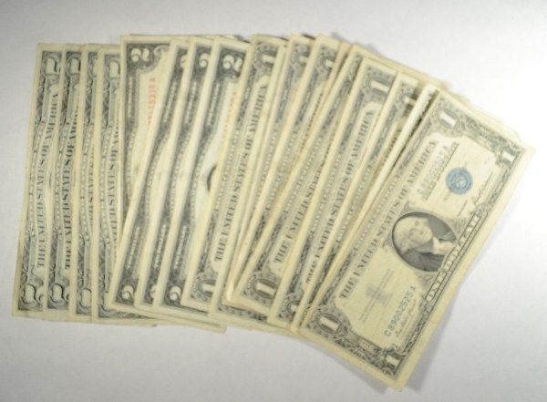 ( 10 ) $1.00 SILVER CERTIFICATES, ( 4 ) $2.00 RED SEAL NOTES, AND( 5 ) $5.00 RED SEAL NOTES EST. $70.00 TO $75.00