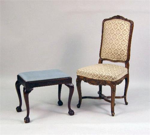 Together with a Chippendale-style foot stool. 41 1/2"h x 20"w x 19 1/2"d and 18"h x 22"w x 16"d