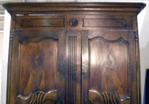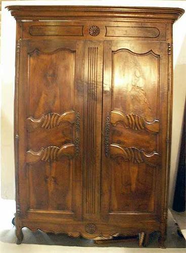 French, the cupboard doors opening to a fitted and upholstered interior. Some repairs, restoration and losses. 7`8"h x 5`6"w x 26"d.