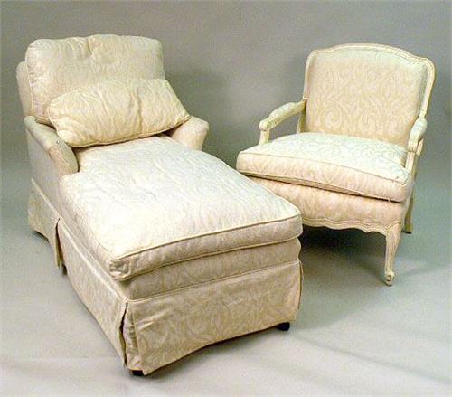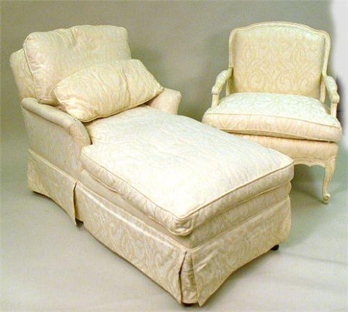Together with accompanying upholstered chaise lounge. 2 pieces.