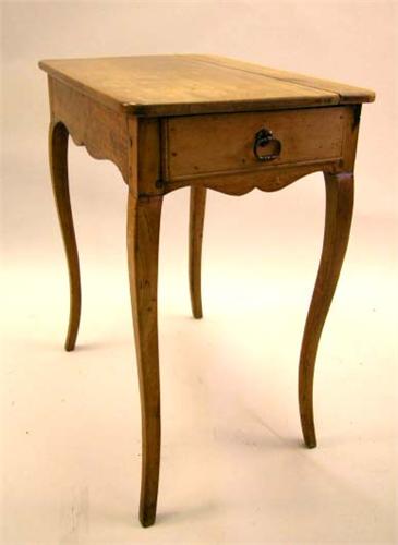A LOUIS XV PROVINCIAL WALNUT SIDE TABLE WITH DRAWER; French, the oblong top above a shaped apron and cabriole legs, 28"h x 16-1/2"w x 24"d, repairs