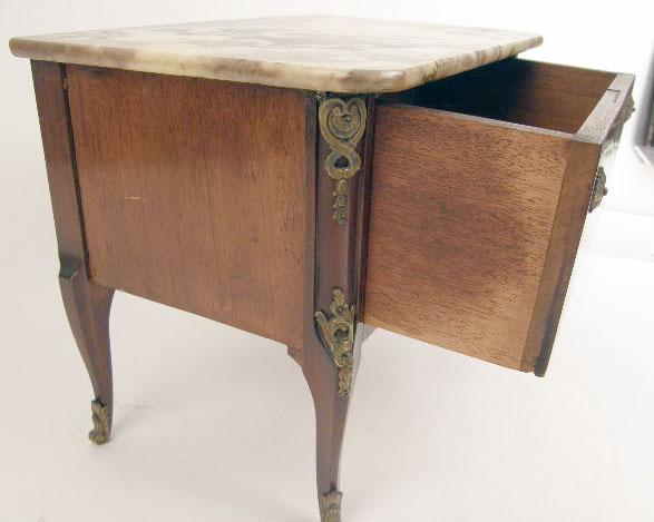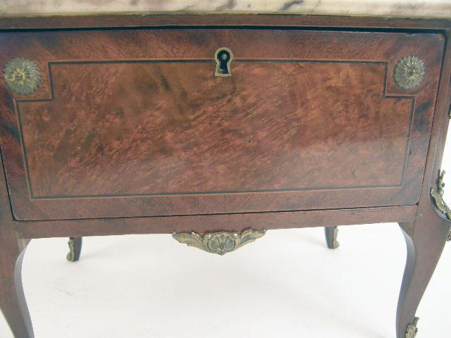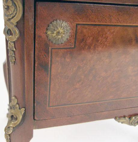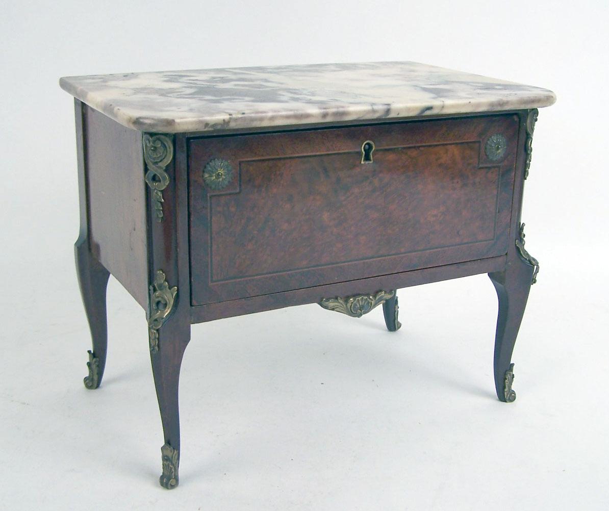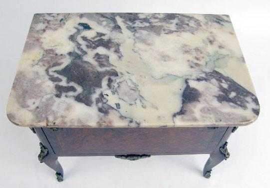 A LOUIS XV-STYLE MINIATURE MARBLE TOP ORMOLU-MOUNTED MAHOGANY COMMODE