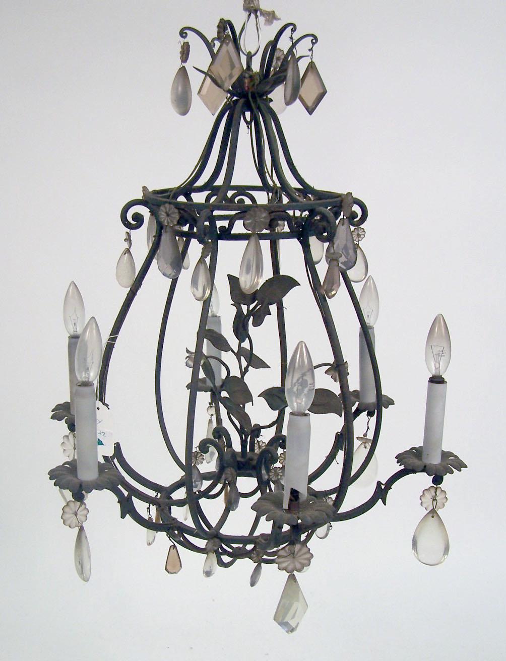 A LOUIS XV-STYLE PATINATED METAL AND GLASS-MOUNTED SIX-LIGHT CHANDELIER