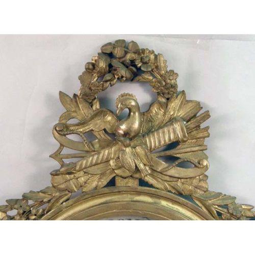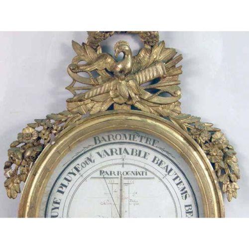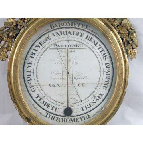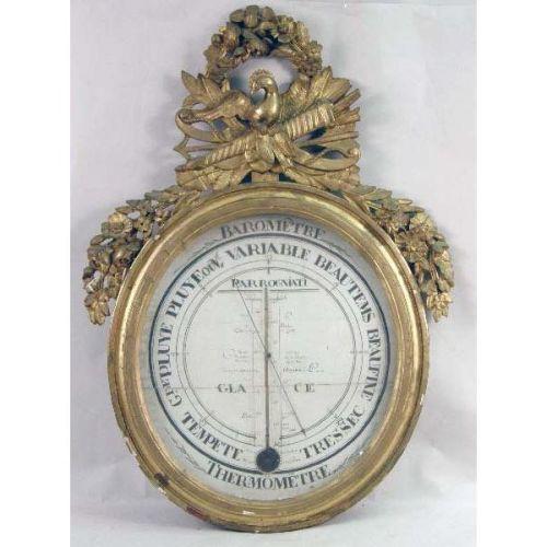 A LOUIS XVI STYLE CARVED GILT WOOD CIRCULAR WALL MOUNTED DIAL BAROMETER<BR><BR>35"h x 26"w