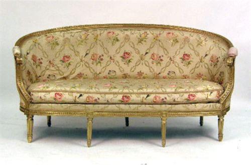 37 1/2"h x 74"w Repairs to one back leg, wear to upholstery.