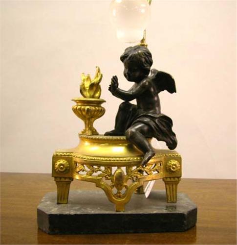 A LOUIS XVI STYLE ORMOLU CHENET MOUNTED AS A LAMP; 18" h