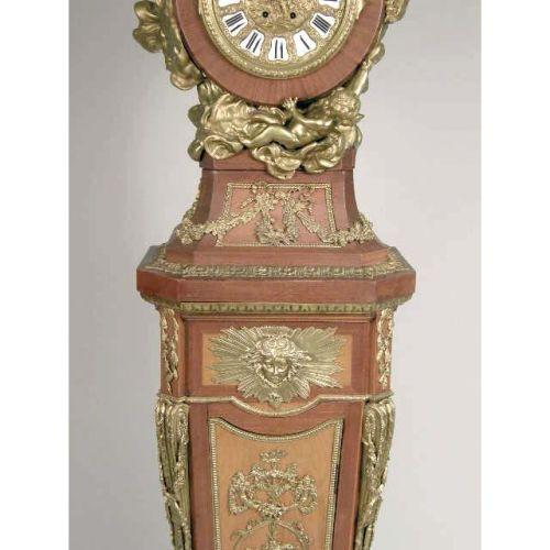 A LOUIS XVI-STYLE ORMOLU-MOUNTED MAHOGANY TALL CASE CLOCK<BR><BR>In the French tradition, 7`2"h x 21"w x 13"d