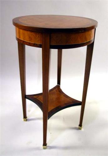 A LOUIS XVI STYLE ORMOLU-MOUNTED PARQUETRY CIRCULAR GUERIDON; With a platform stretcher and sabots (minor repairs) 29 1/2"h x 18"d