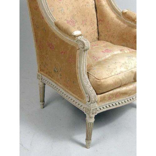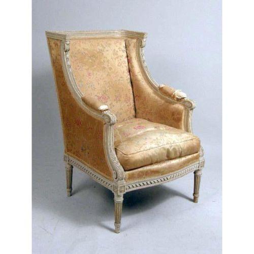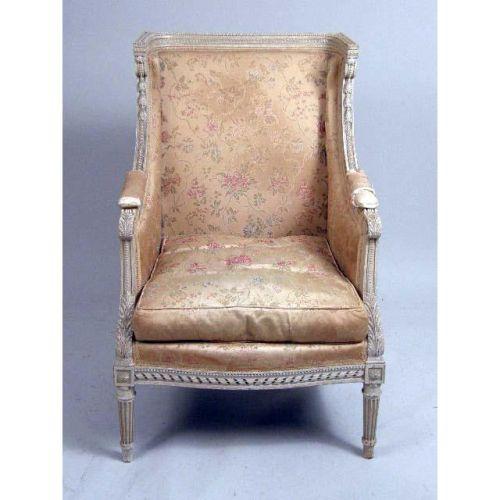 A LOUIS XVI-STYLE WHITE-PAINTED BERGERE<BR><BR>39"h