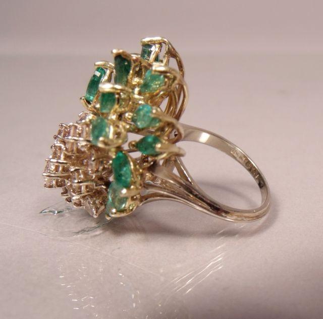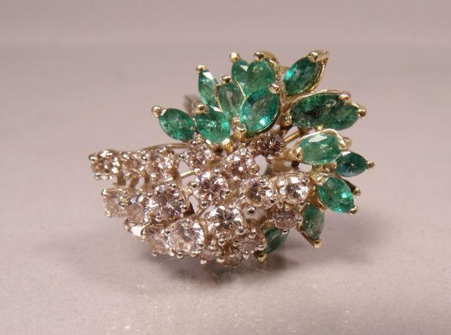 A Ladies 14 kt Yellow Gold, Diamond and Emerald Ring, 1.50 ct diamond melee, 2.50 ct emerald, item weight 10.1 gms. Size: 5.25