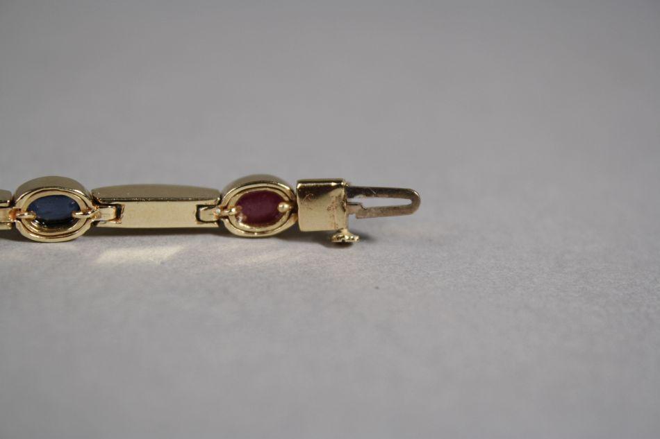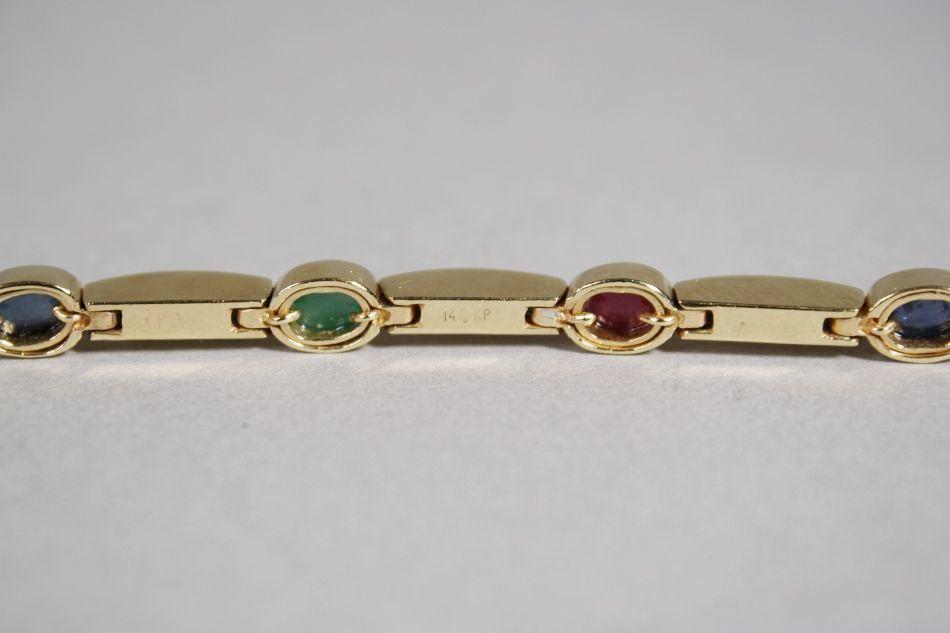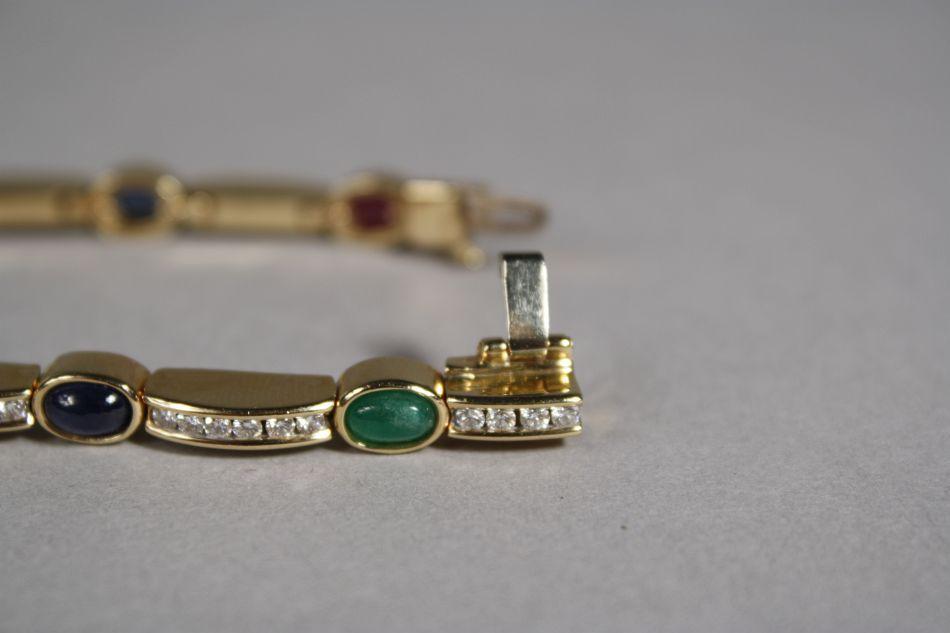 A Ladies 18 kt Yellow Gold, Ruby, Sapphire and Emerald Segmented Line Bracelet,