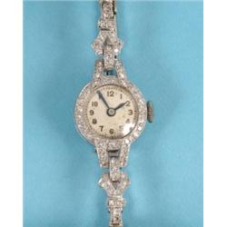 A Ladies Art Deco Cocktail Watch, with white metal case and bracelet, set with sixty two diamonds See illustration £400 - 500