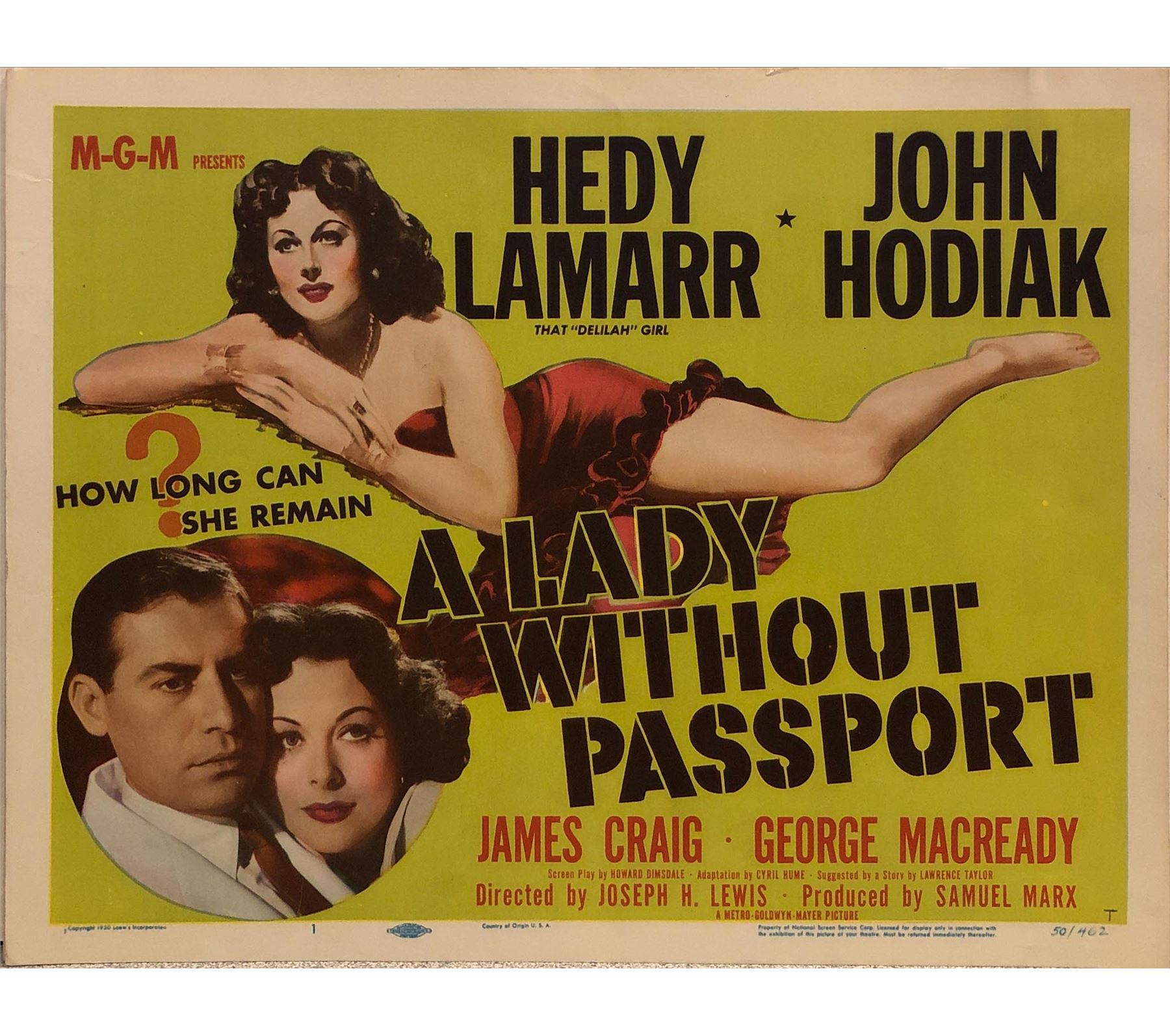 A Lady Without A Passport Original 1950 Vintage Lobby Card on Heavy Card Stock. 11X14 Inches