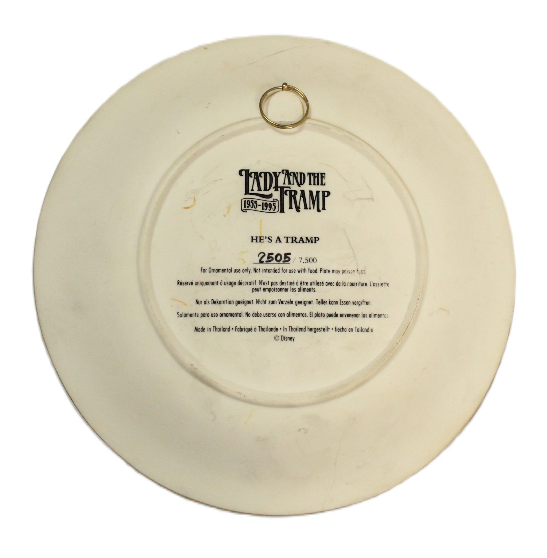 (Disney, 1995) This is a limited edition (2505/7500) 3D relief plate celebrating the 40th anniversary of the animated classic, 'Lady and the Tramp'. Titled "He's A Tramp", this beautiful plate measures 8.5" across and is 2.25" thick. It is in fine condition.