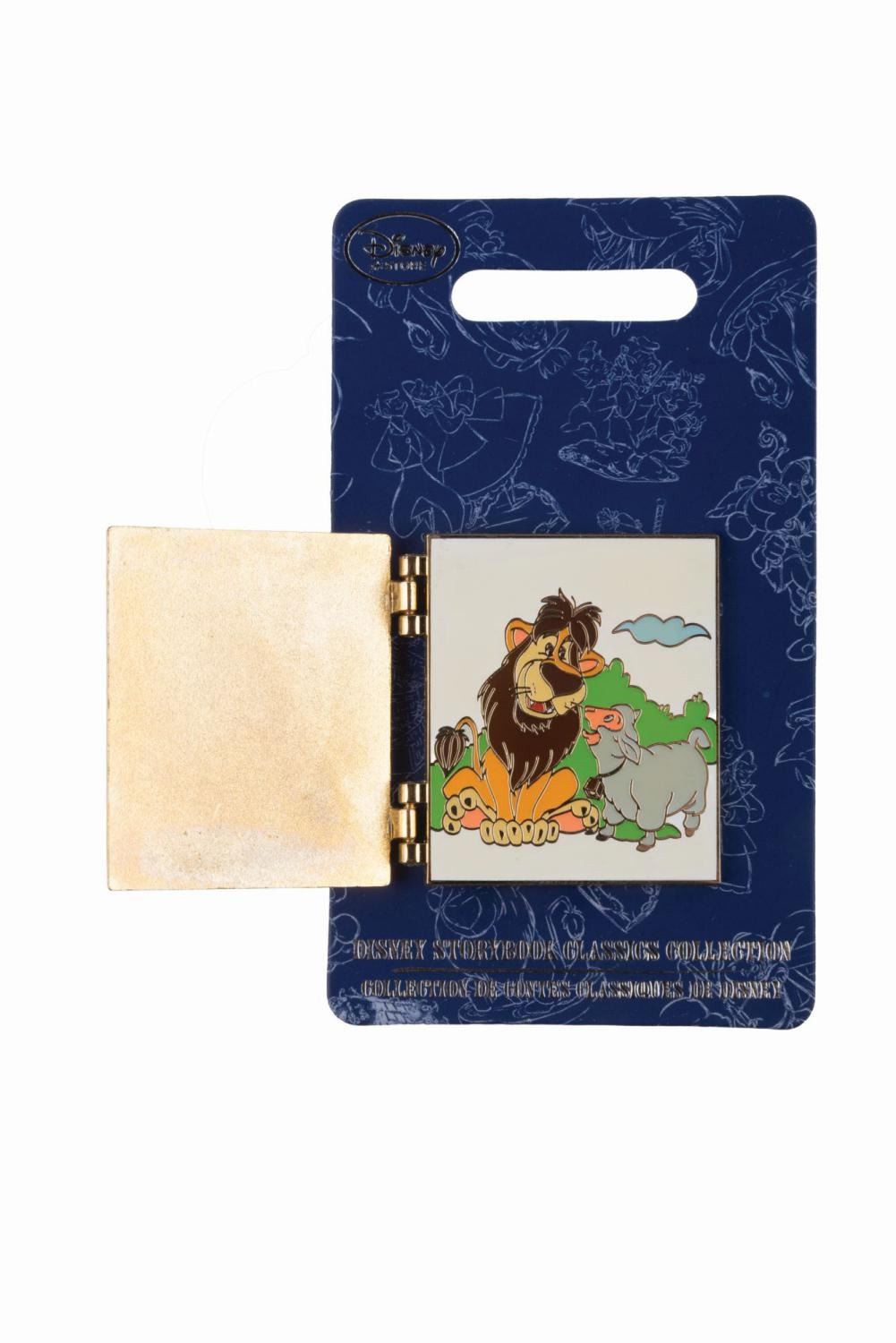 (Disney, 2016) A "Lambert the Sheepish Lion" hinged book pin, released in the Disney Storybook Pin Collection in November 2016. Measuring 1.5" x 1.75" the LE 1100 pin is in fine condition on the original card.