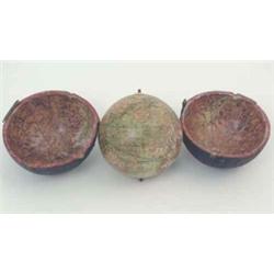 A Lane's 3in terrestrial pocket globe, circa 1830, the printed paper and lacquered gores with cartouche inscribed "LANE's IMPROVED GLOBE, LONDON", set in black fishskin case lined with celestial gores, damages to globe and case £700-1,000
