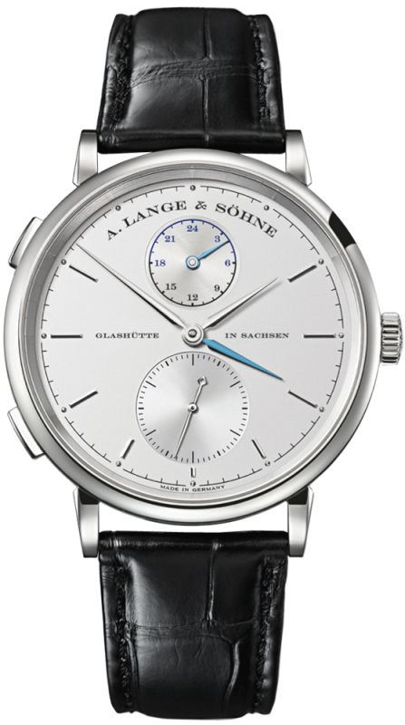 Model: 385.026 - CASE = [Material:18kt White Gold], [Case Diameter:40], [Case Thickness:9.1mm], [Bezel:Fixed], [Case Back:Skeleton], [Water Resistant:30 Meters - 100 Feet], [Crystal:Scratch Resistant Sapphire], DIAL = [Color:Silver], MOVEMENT = [Type:Automatic, GMT Time Zone], [Crown:Push In], BAND = [Clasp:Tang], [Type:Black Alligator Leather], (Usually ships in 1 to 2 weeks.)