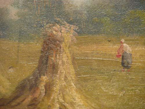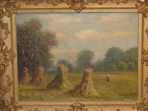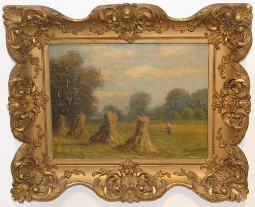 A Lanier oil painting Landscape with Haystacks