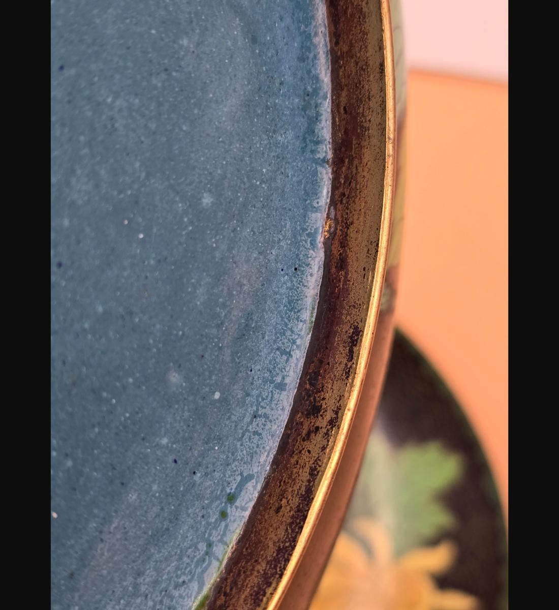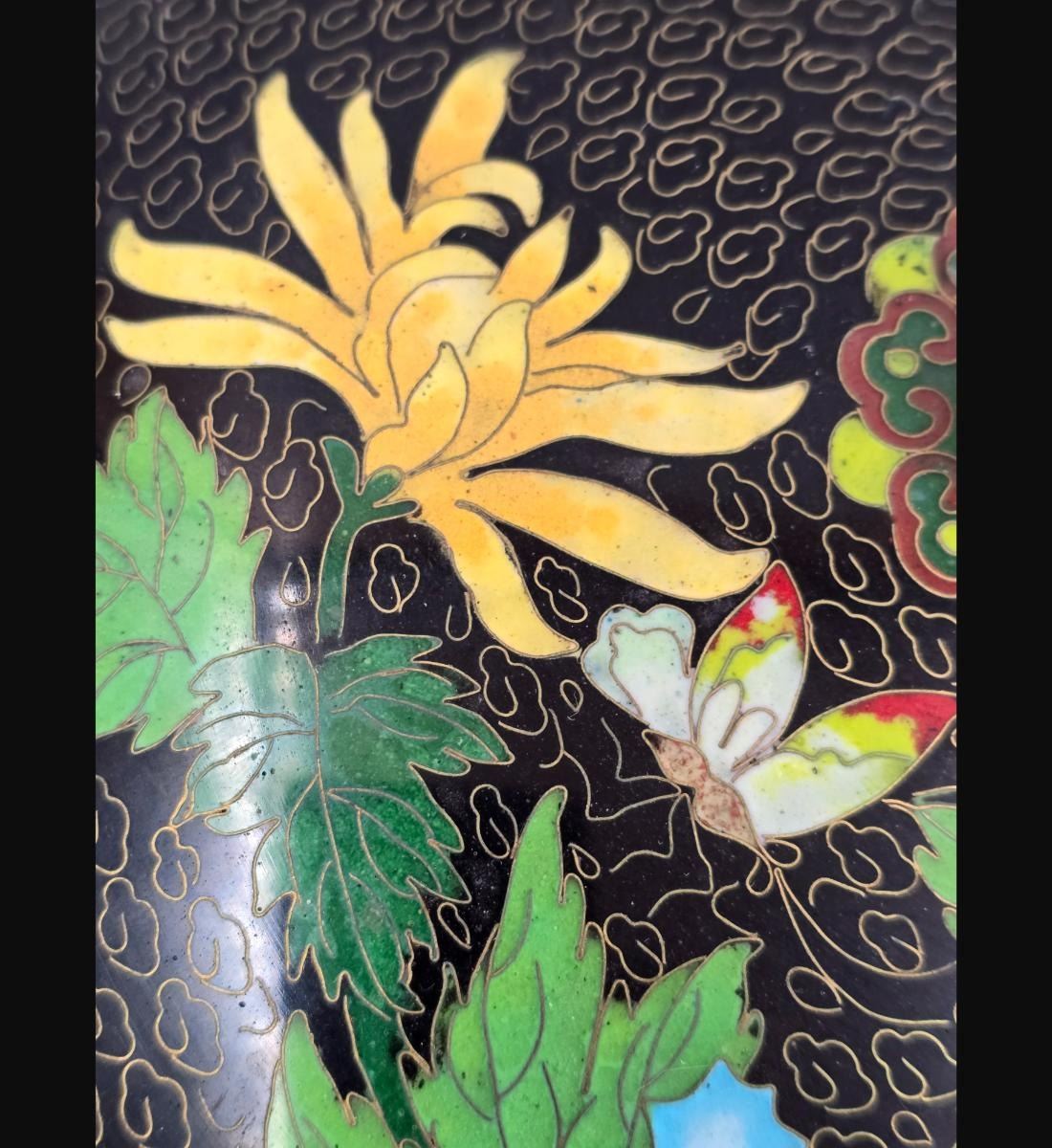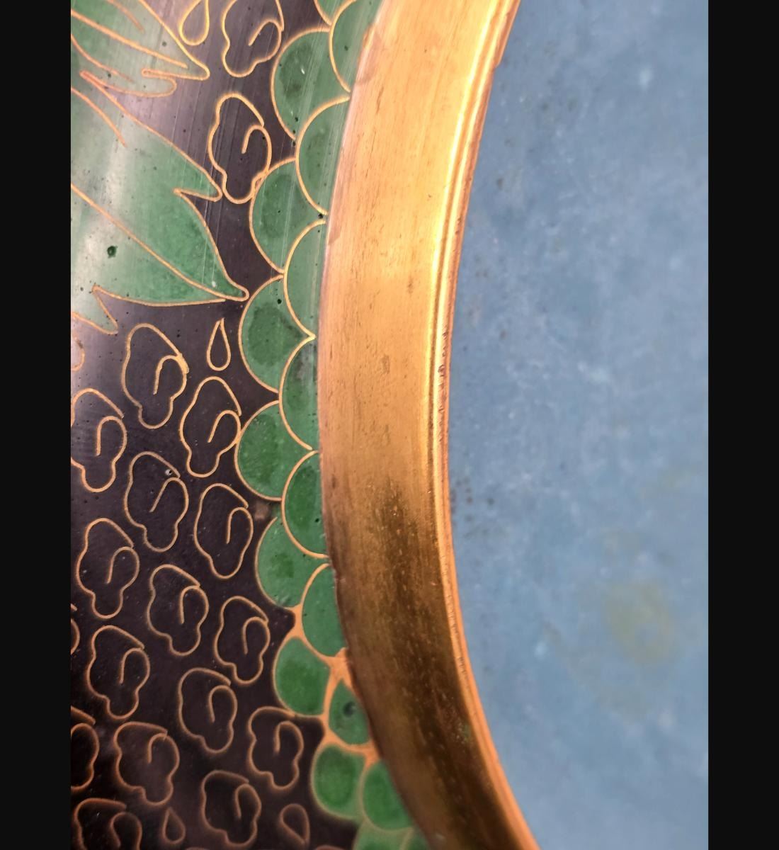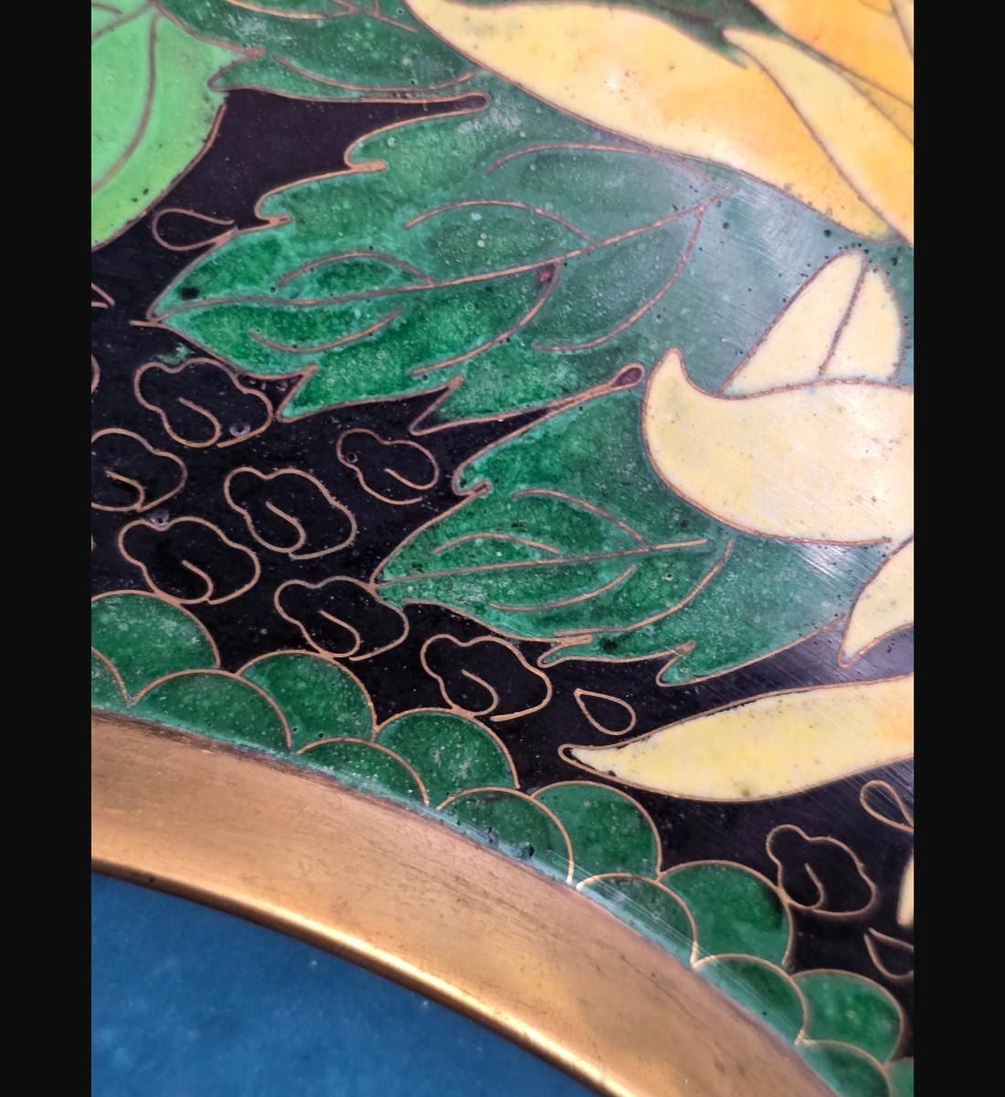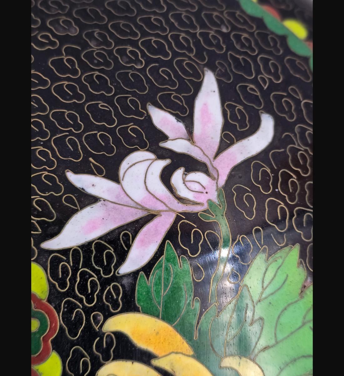A Large Chinese Cloisonne Lidded Bowl On A Wooden Stand. Bowl Measures approx. 10.5" X 6". Provenance: One Person Private Estate Central Florida.
